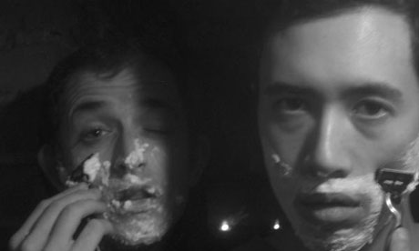 A: Like certain humorous failures. Like in that picture there’s shaving cream everywhere but…we’re clearly doing a bad job of shaving, which is one of the overarcing themes of all the lyrics. The acceptance of failure, both personal and systemic.